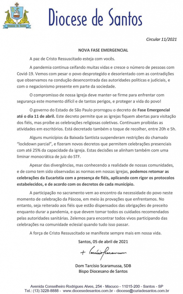 Circular 11/2021 – Nova Fase Emergencial – 5/4/2021
