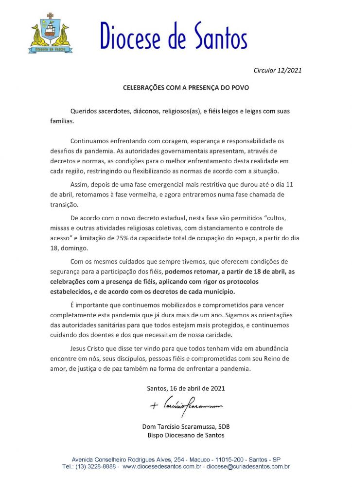 Circular 12/2021 – CELEBRAÇÕES COM A PRESENÇA DO POVO