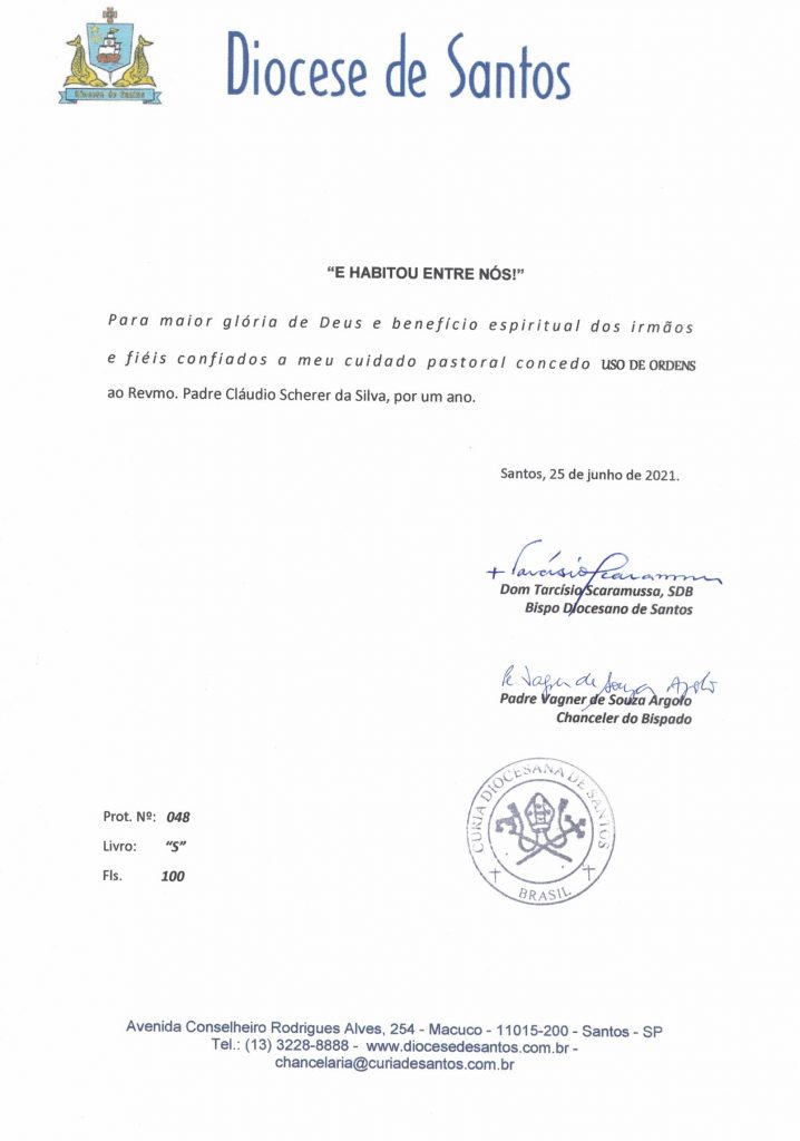 Concede – Uso de Ordens ao Pe. Cláudio Scherer da Silva – 25/06/2021