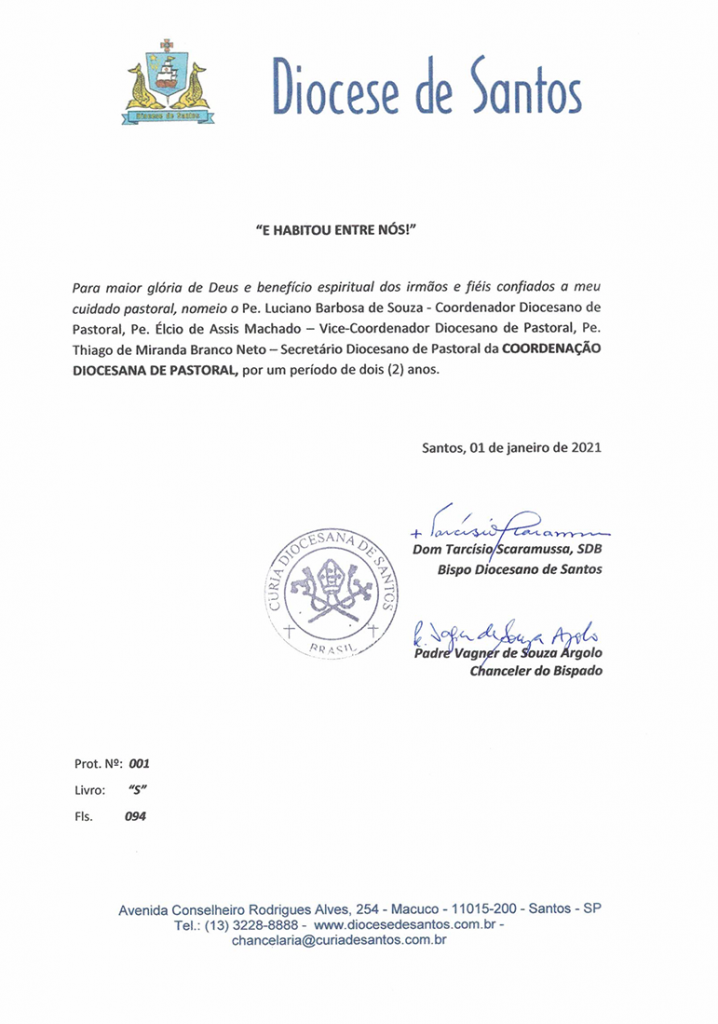 Nomeia – Coordenação Diocesana de Pastoral (01/01/2021)