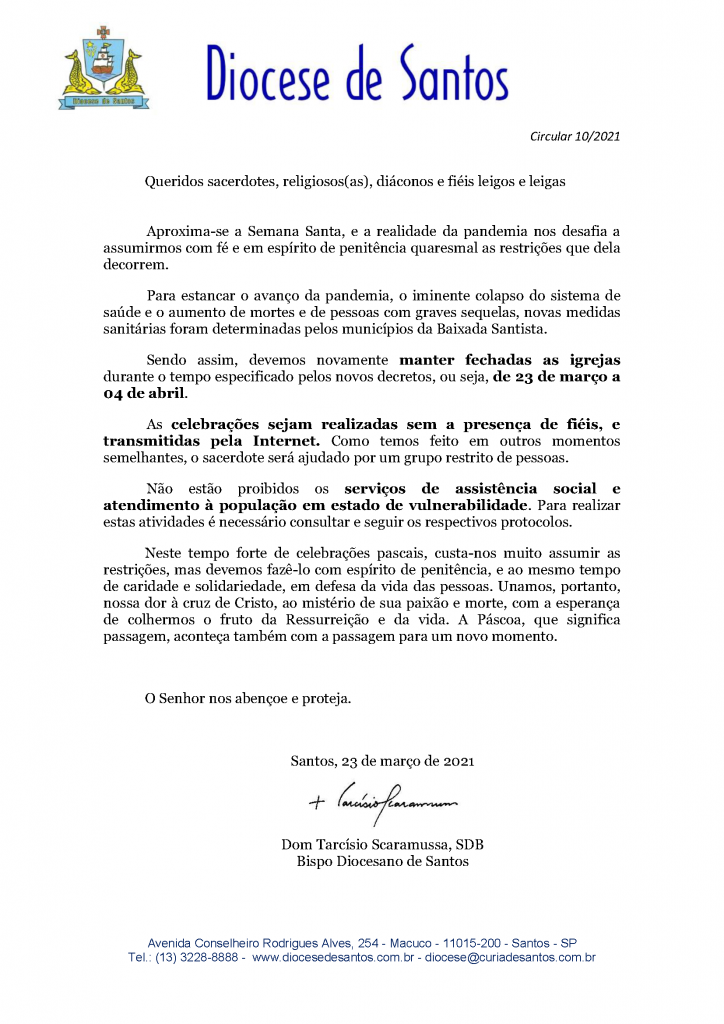 Semana Santa na Diocese de Santos – Circular 10/2021