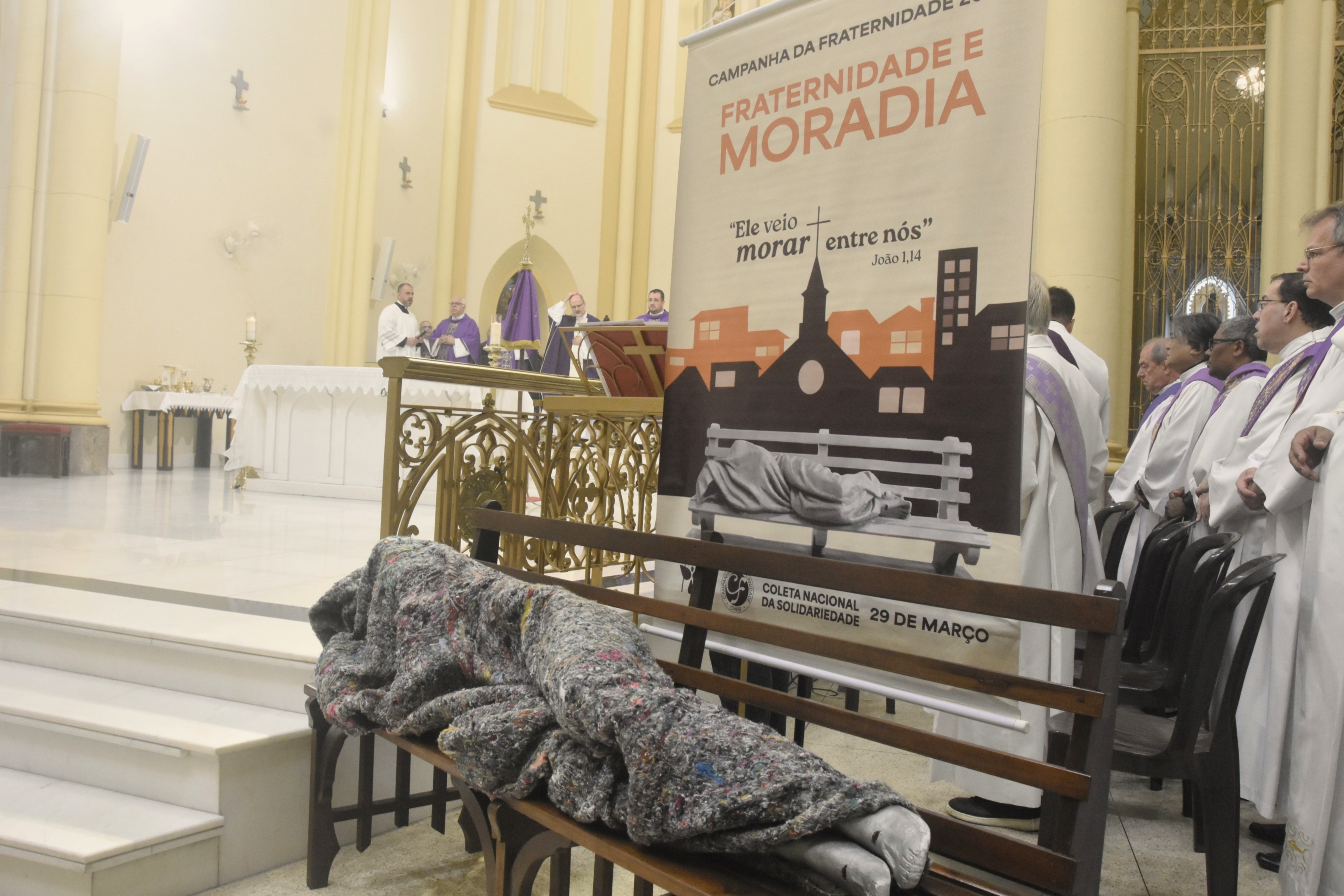 Durante a homilia, Dom Mol destacou que “esta campanha é para aumentar a nossa fraternidade; é para lembrar que todos somos irmãos e irmãs no Senhor e que precisamos ficar juntos em campanha, dando os passos quaresmais neste ano: refletindo, atuando, nos deixando converter pelo desafio da moradia”.