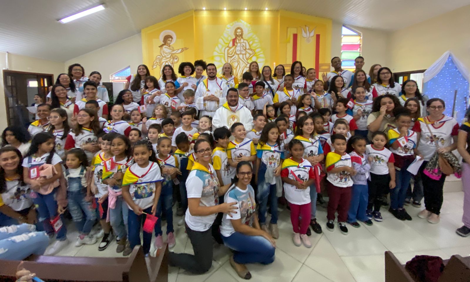 Após a celebração, todos se reuniram para um lanche partilhado. "De todas as crianças e adolescentes do mundo! Sempre amigos."