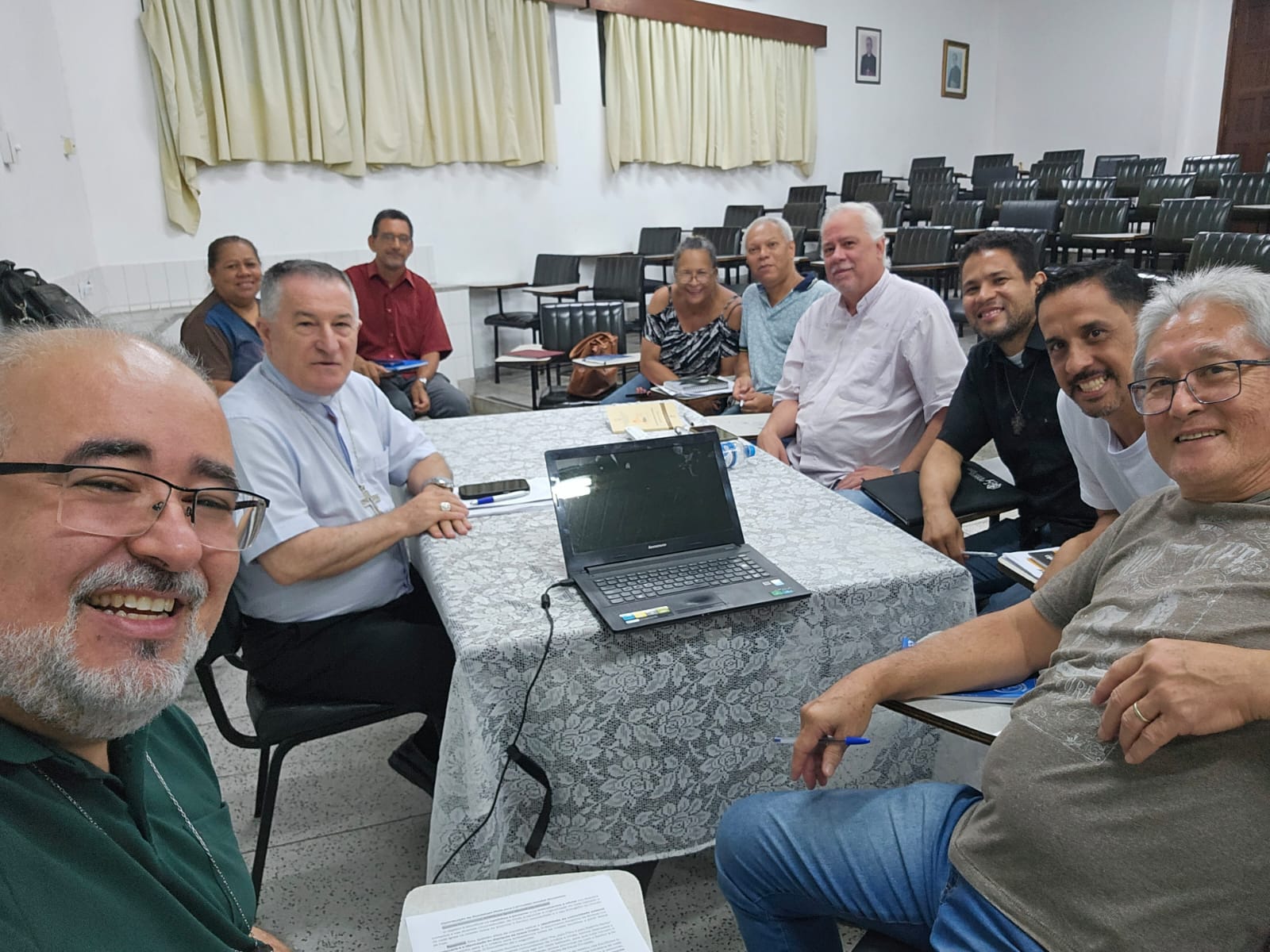 Dom Tarcísio Scaramussa, SDB, Bispo Diocesano de Santos, membros do Conselho Diocesano de Pastoral e da Equipe de Assessoria Pastoral, juntamente com o Pe. Francisco Greco, responsável pelo sínodo na Diocese, estiveram reunidos na última segunda-feira, 26, no Centro de Formação para o Apostolado de Santos, Cefas, para elaborar um relatório que será enviado para a próxima sessão do Sínodo.
